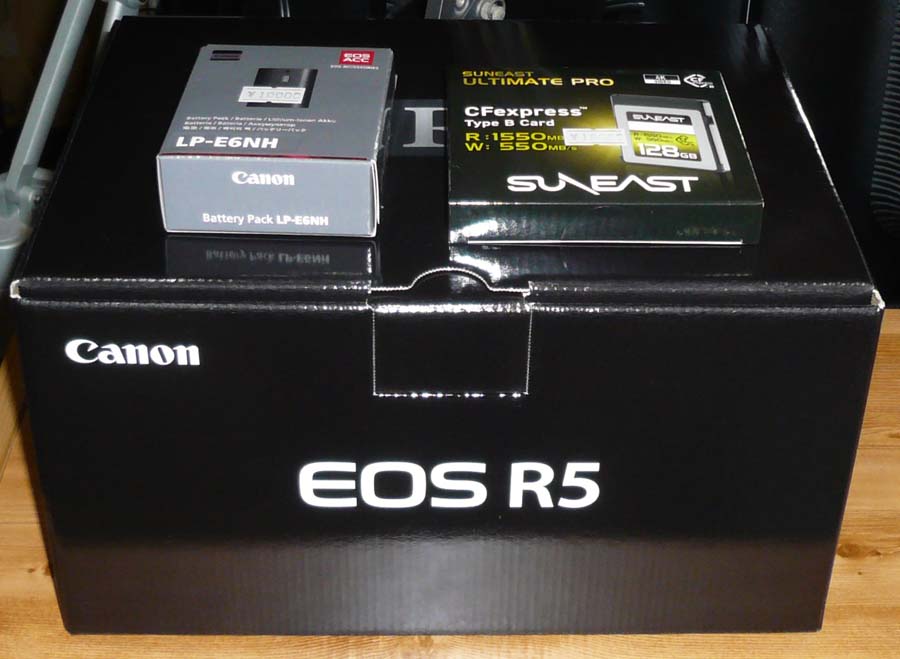 ↓ R5にはCFexpressのスロットがあるので、最低限活用するためにメディアを購入。合わせて追加バッテリーも追加購入。これらはボディと一緒に買うのが一番お買い得ですから。