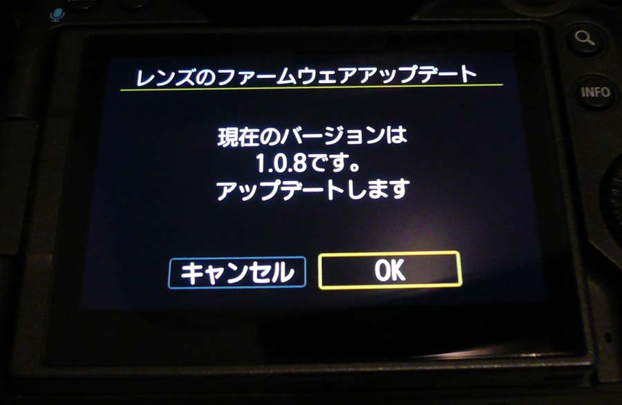 ↓ 前回ボディのファームウェアアップデートを実施したのですが、ダウンロードページをよく見るとレンズのファームウェアアップデートも案内がありまして、レンズは全く出来ていなかったので、続けて実施してみた次第です。レンズを装着した状態でメニューからアップデートを選択すると、ボディとレンズ両方の表示に変わりました。そこでレンズを選択して先に進みます。