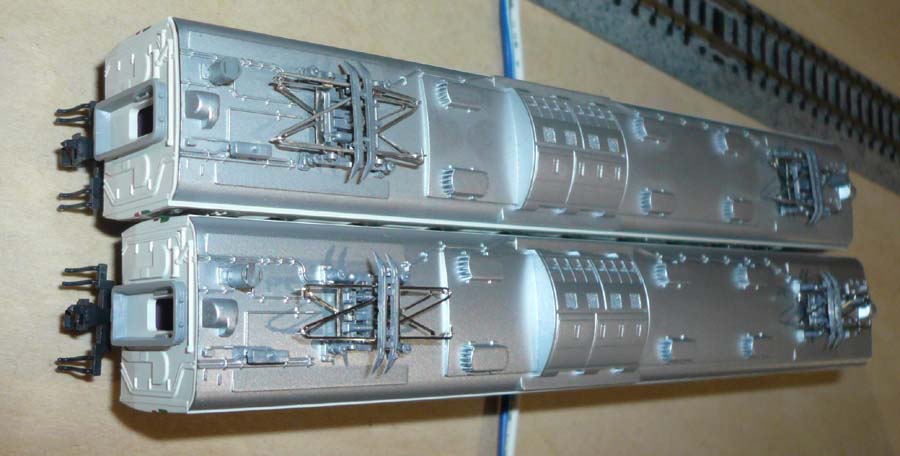 ↓ パンタ付きのモハ182。旧仕様の幅広パンタですが、下枠を少しだけ変形させて、板バネなしでも上昇時の形を保ってくれるようにしてあります。