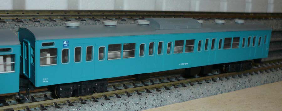 ↓ モハ103。クーラーは別パーツにして色分けしておいてほしかった。