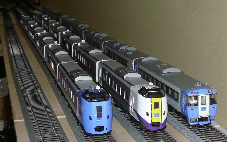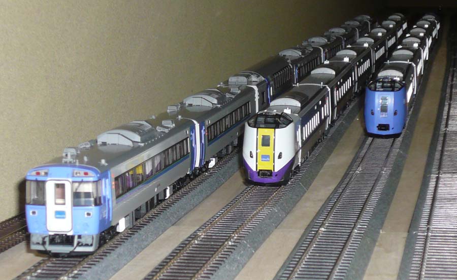↓ 先日、261系の新塗装も増結できるようになりましたので、北海道の特急列車を並べてみました。