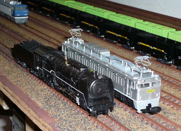 ↓ C62とEF81−300を並べてみました。早く電機に似合うように架線柱を取り付けたいですね。