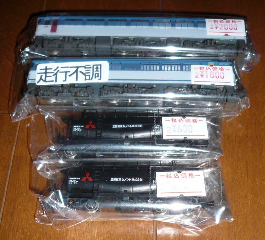 ↓ 続いてジャンク品。こちらもこの価格から10%オフでした。EF81-500は始めてだったのでラッキーだったのですが、この画像撮影直後に落下事故を起こしましてヒサシの一部が折れてしまいました。悲しい・・・。EF65は走行不調と書いてますが音が大きいだけでスローも問題ありませんでした。関西のぽちはジャンクでも動作確認できるのに他の地区ではチェック不可なんですよね。この違いはなんで??