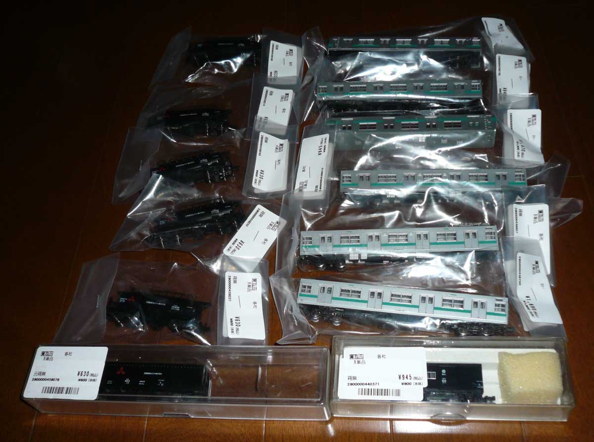 ↓ 続いて銀座の4階。ここはいつも何がしかの好みの車両がそんなに高くない価格で出ているので外せません。今回は程度の良い203系が6連(T'c+M'+M+M'+M+Tc)で出ていました。足らず(T+M'+M+T)をどこかで探さねば。他はE851セットの貨車が出てましたので纏めて連れて帰ってきました。