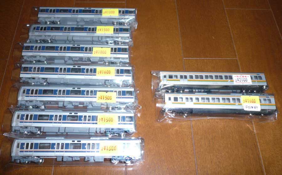 ↓ 続いてJR西日本の207系。例の事故で再生産が大幅に延期され品薄に拍車がかかり中古でも高値維持でしたが、今では再生産もされて価格もこなれてきたようです。バラジャンクでしたがフル編成で売られていたので連れて帰って来ました。右側は213系5000番台。先日名古屋で撮影したもので機会があればと思っていたものでした。どっちも動力車が異様に安い値付け・・・。
