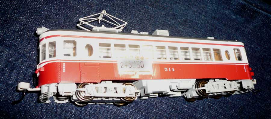 ↓ 前回に続いて東京遠征で買ってきたジャンク品。機会があればと思っていた名鉄500形の急行塗装。パンタ側前面の帯がはげているのですが、この程度なら補修出来そうです。