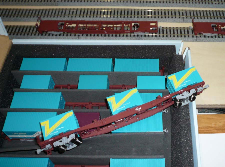 ↓ 以前マッハのセールでゲットしていたグレー台車のコキ50000と編成を仕立ててみます。