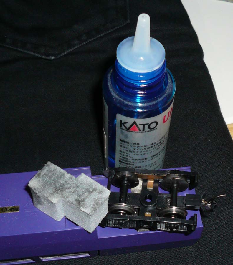 ↓ ところが集電不良を起こすので確認すると車輪が汚れで真っ黒。早速ウレタンにクリーナーを垂らして清掃するとウレタンが真っ黒になるほど汚れてました。
