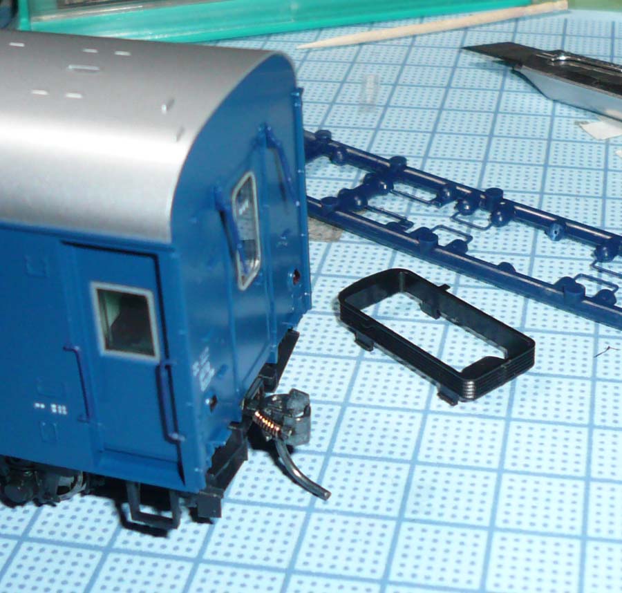 ↓ インレタの貼り付けが完了したので、次はパーツを取り付けていきます。このオユは中古で入手したものなのですが、ランナーから切り出したテスリが別に添付されてましたので、それを取り付けていきます。
