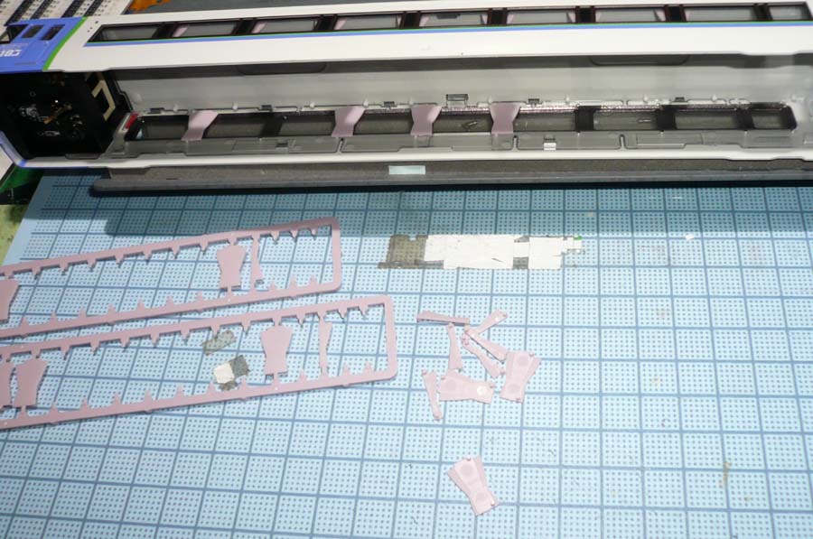 ↓ 前回の続き、キハ183系へのパーツ取付を進めます。キハ182へのカーテン取付です。