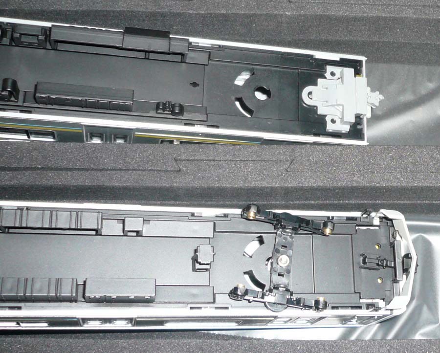 ↓ モハには、両方ともにパワトラが装備されており、メタル軸受けやTNカプラーも組み込まれているので、動作確認はまだなのですが、それなりの走りが期待できそうです。