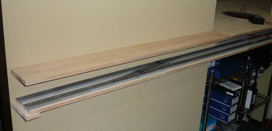 ↓ 部屋の入口に向かって右手の部分。先日渡り線を追加した箇所に2階部分を追加します。