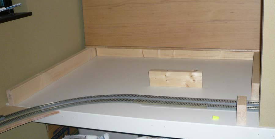 ↓ 1階部分の周回路から分岐する引き込み線を配置してみました。北西側のコーナー部分です。ここはすべて4番ポイントを使用します。スペースも節約できますし。
