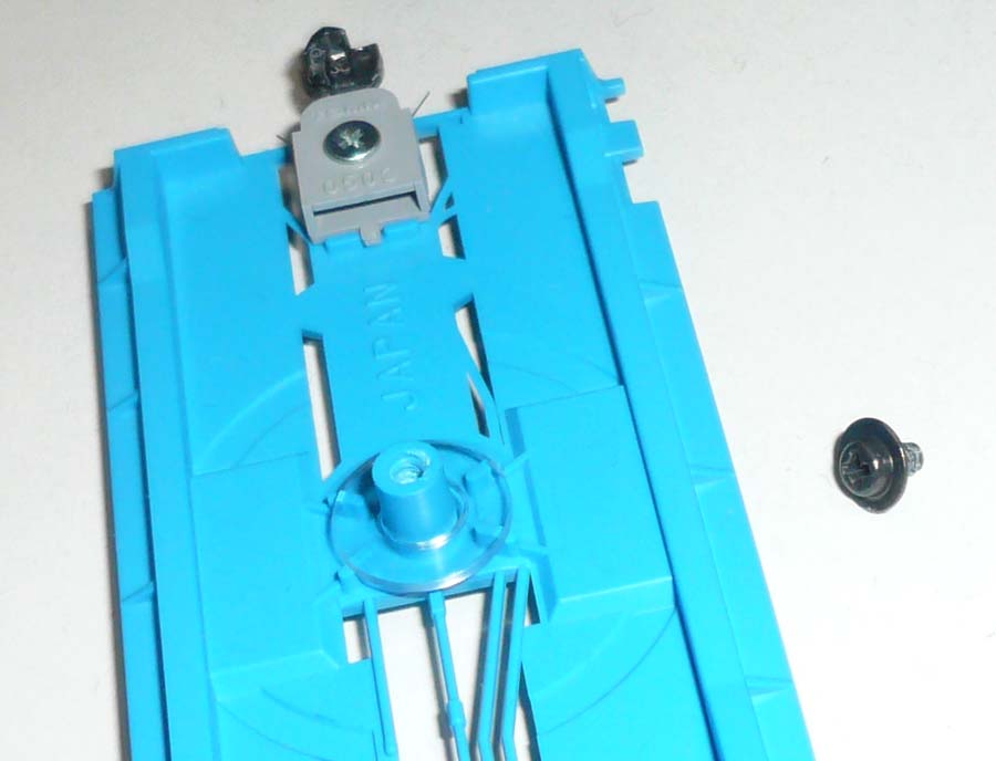 ↓ 切り欠き加工は、この台車側に付いた回転防止の突起を避けるためなのです。