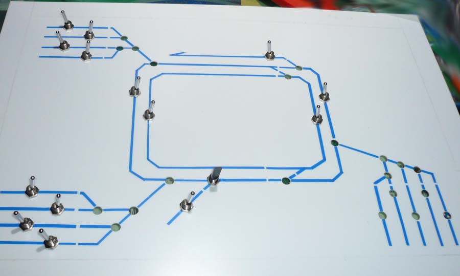 ↓ 黒いツマミのトグルスイッチはポイント制御用。こちらはポイントの切り替え方向が倒れ方向で分かるように、基本は上下方向に倒れるように取り付ける予定です。