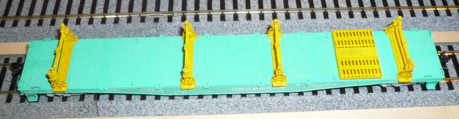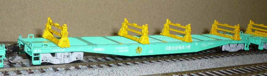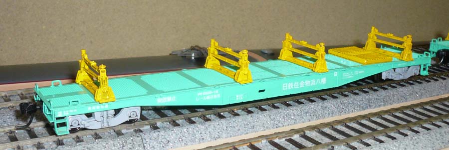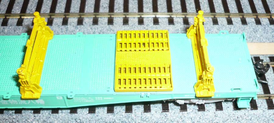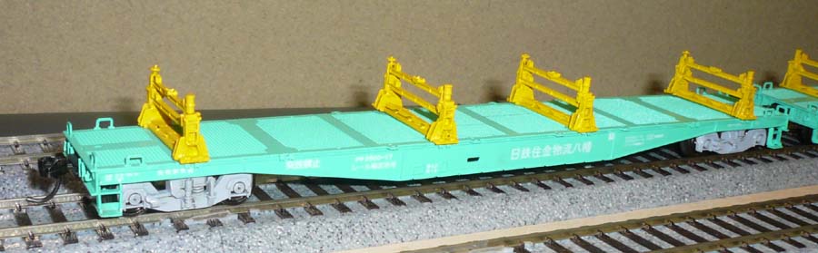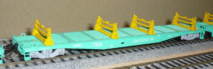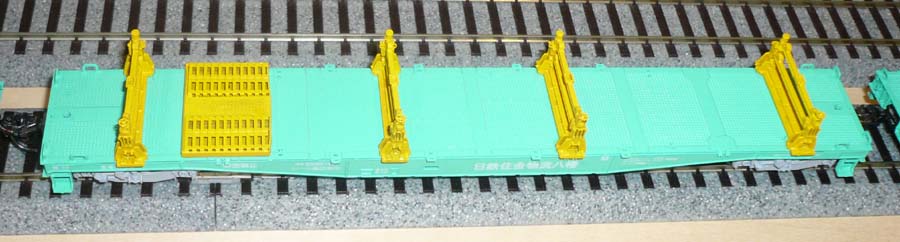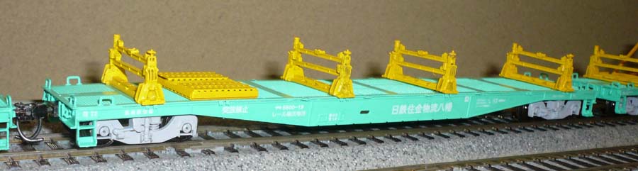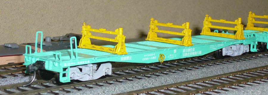 ↓ 編成中央に位置するチキ5450-1の隣に連結される車両のようでして、他のチキ5500には付いていない台のようなパーツが取り付けられています。