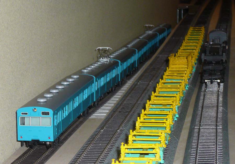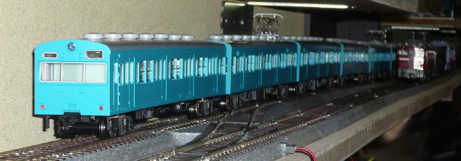 ↓ 先日届いていた103系の本線試運転。スロープから下の本線に下ろしていきます。