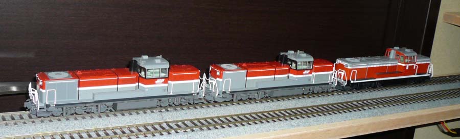↓ M車はたまに走らせておかないと調子が調子が悪くなるので、以前Nゲージでやっていた正月の運動会を復活させないとイケナイです。とりあえずすぐに走らせることが出来そうなDD51を2両まとめて重連で本線を周回。