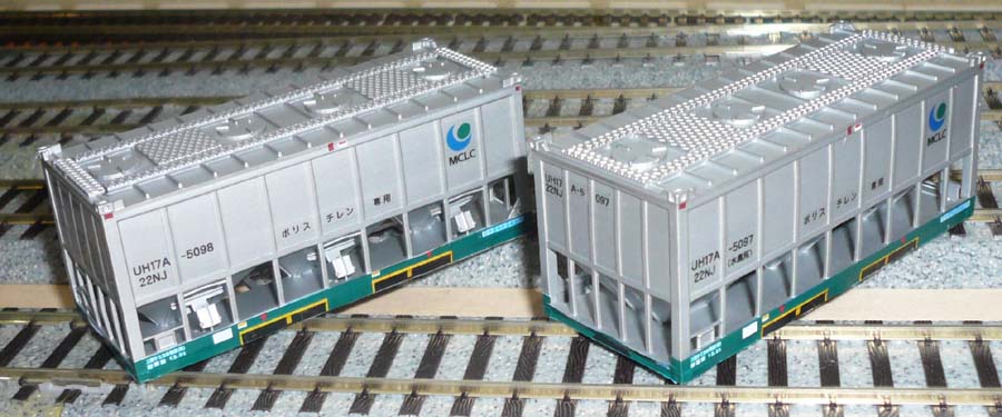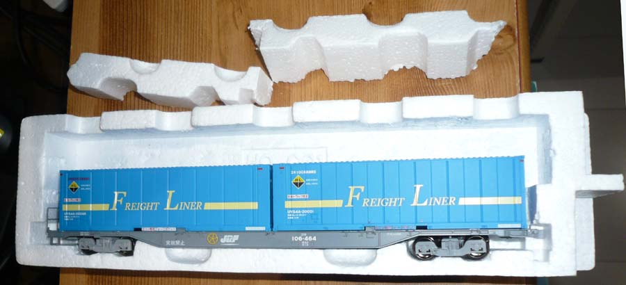 ↓ コキ106の古いケースはコンテナを付けたままで収納できないので、発泡スチロールの邪魔な部分を取り除いてみました。