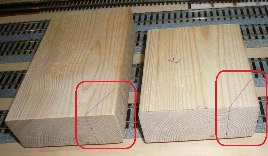 ↓ 前回の続きです。2階部分を支える柱を挟み込んだのですが、出っ張っている角部分が気になるのでカットしておくことにしました。おおよその切断ラインを書き込んでおきます。