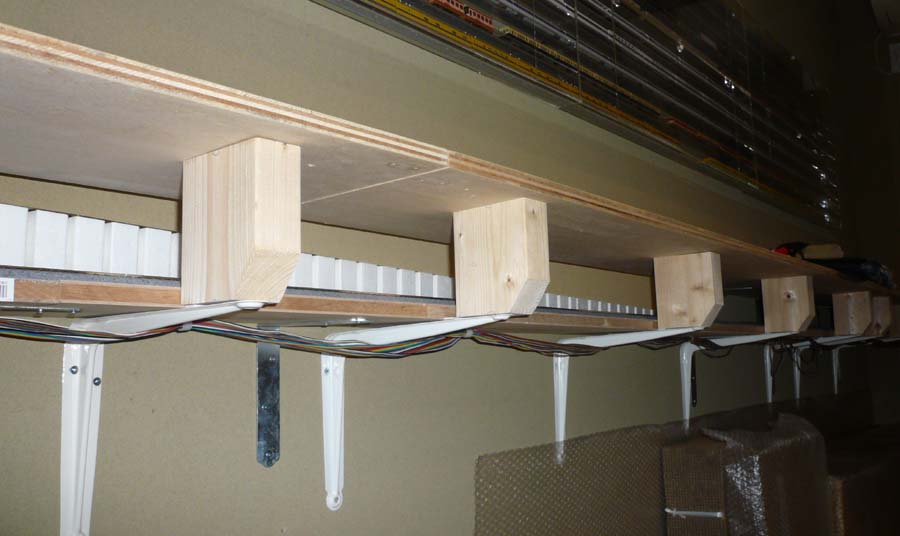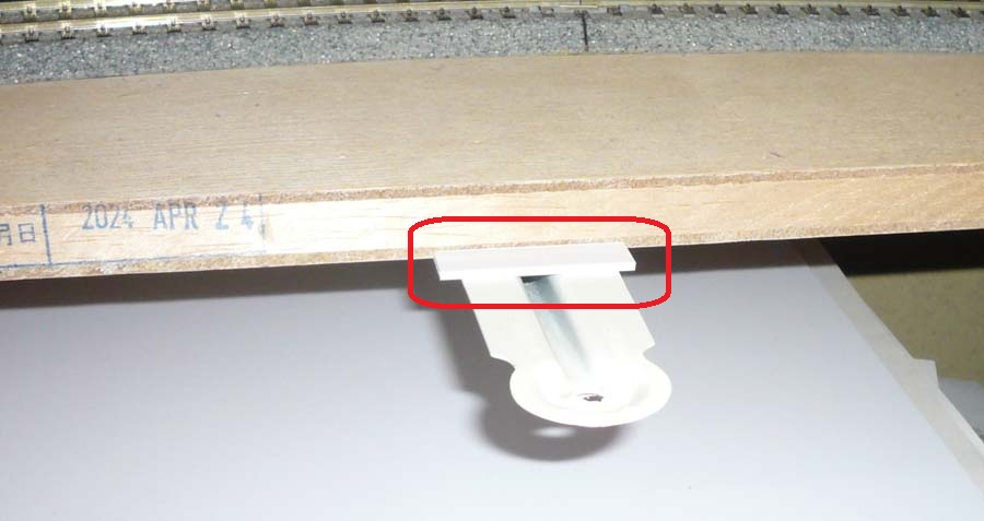 ↓ 角部をカットしたものを入れた状態がこちら。重たいHOの車両が乗るので柱の数は多めですが、1階部分のレール清掃にはあまり邪魔をしないと思います。これでしばらく様子を見たいと思います。